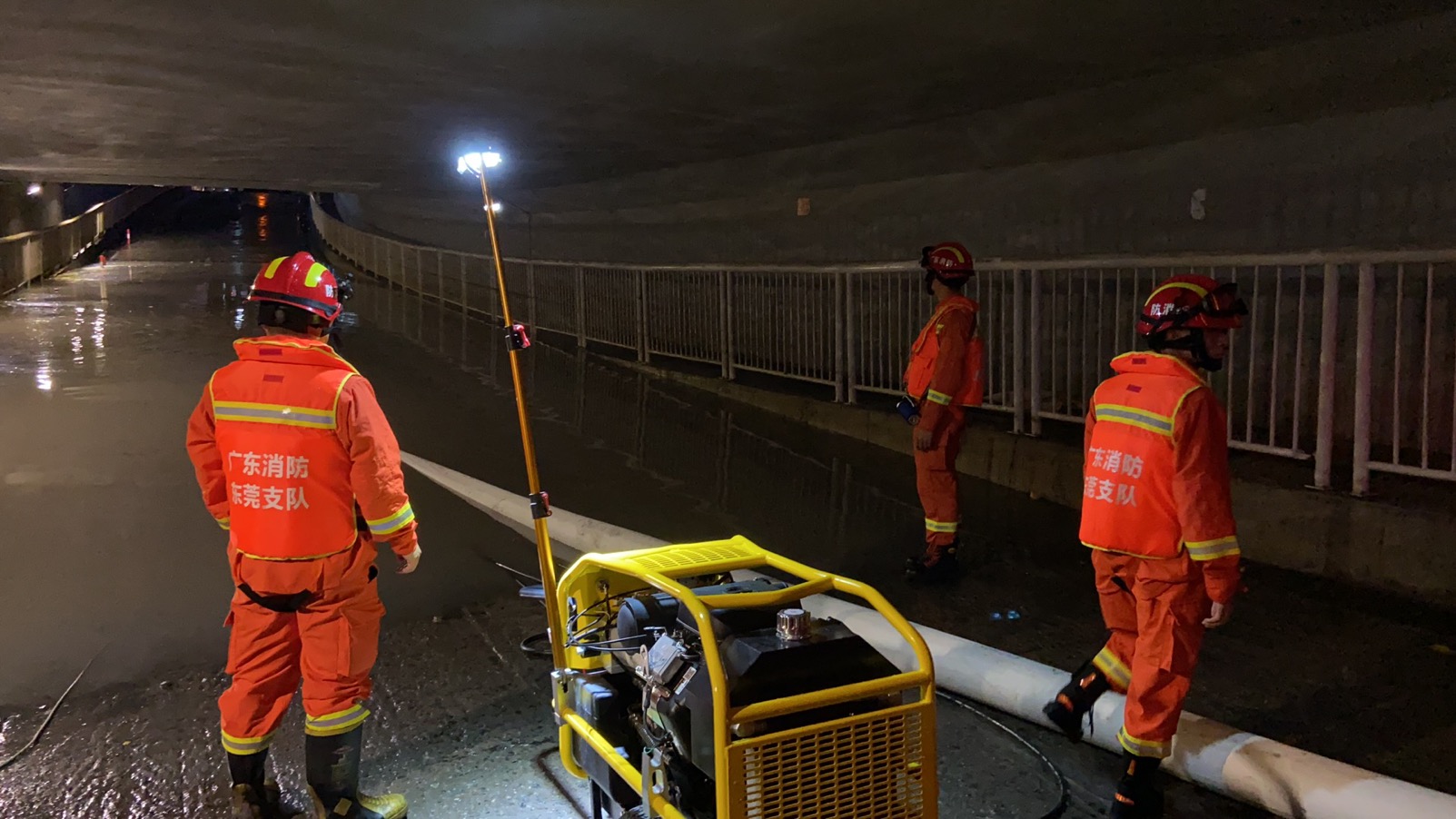 2021年5月31日下午,東莞市普降暴雨,局部大暴雨并伴有雷電和7-8級(jí)陣風(fēng),東莞市氣象局發(fā)布暴雨橙色和分鎮(zhèn)暴雨紅色預(yù)警信號(hào),全市多個(gè)鎮(zhèn)街(園區(qū))發(fā)生較嚴(yán)重內(nèi)澇,多地出現(xiàn)道路積水,房屋、車(chē)輛被淹及群眾被困情況。東莞市消防救援支隊(duì)立即啟動(dòng)部門(mén)應(yīng)急預(yù)案,切實(shí)做好暴雨洪水搶險(xiǎn)救援工作。截至6月1日8時(shí),全市消防救援部門(mén)共接報(bào)強(qiáng)降雨內(nèi)澇相關(guān)警情17起,出動(dòng)消防車(chē)輛25輛次,消防人員119人次,轉(zhuǎn)移疏散、營(yíng)救被困人員15人,無(wú)人員傷亡。