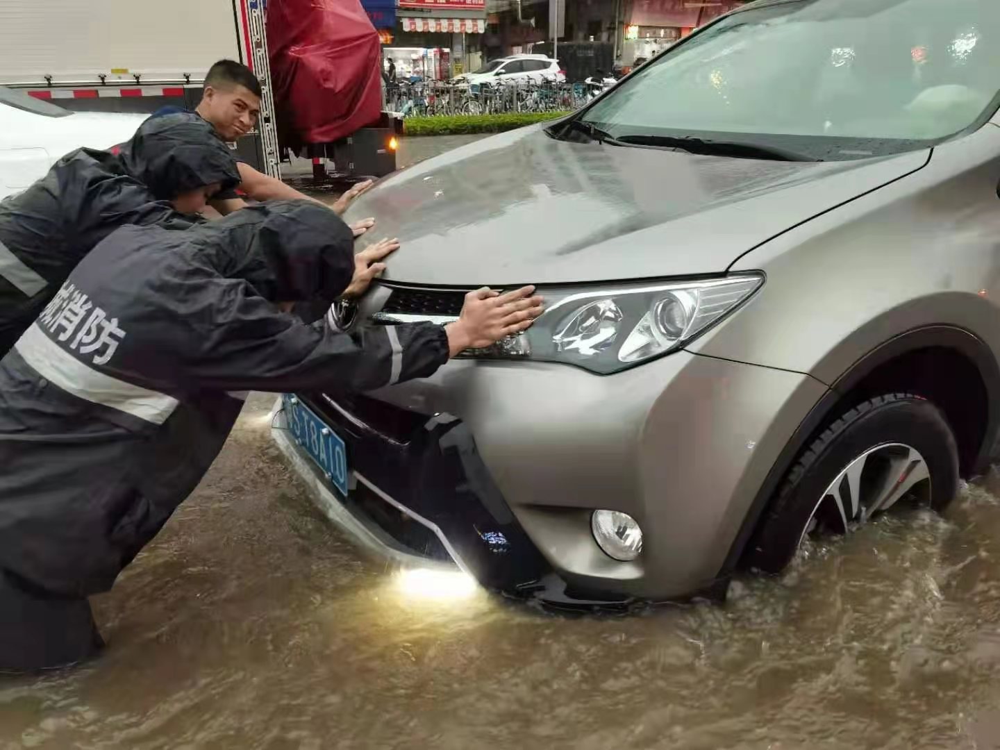 在石碣鎮(zhèn)達(dá)鑫江濱新城高架橋路段有人員被困車(chē)內(nèi),接到報(bào)警后,石碣消防救援大隊(duì)火速趕往現(xiàn)場(chǎng)進(jìn)行救援。由于事故現(xiàn)場(chǎng)路段內(nèi)澇,水位不斷上升,道路出現(xiàn)嚴(yán)重?fù)矶?,消防?chē)無(wú)法通過(guò),在到達(dá)事故地點(diǎn)附近,消防救援人員決定下車(chē)步行至現(xiàn)場(chǎng)。在前往現(xiàn)場(chǎng)途中,消防救援人員發(fā)現(xiàn)一輛轎車(chē)內(nèi)有3名被困人員,立即把這3名被困群眾轉(zhuǎn)移到安全地帶,然后繼續(xù)前往事故地。到達(dá)事故現(xiàn)場(chǎng),消防救援人員立即把車(chē)內(nèi)1名被困群眾背到安全地帶。隨后,消防救援人員原路返回途中又發(fā)現(xiàn)1名電動(dòng)單車(chē)駕駛員受困,立即將其轉(zhuǎn)移到安全位置。